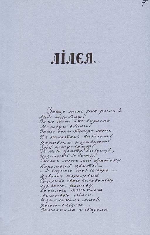 «Більша книжка» Тараса Шевченка. С. 37 – початок поезії «Лілея»