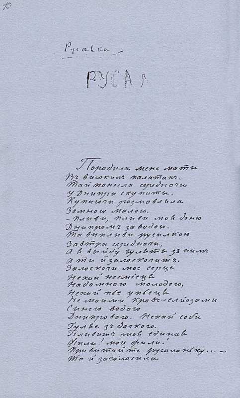 «Більша книжка» Тараса Шевченка. С. 40 – початок поезії «Русалка» |