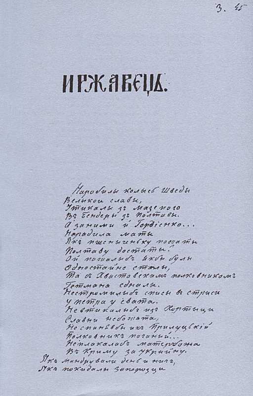 «Більша книжка» Тараса Шевченка. С. 45 – початок поезії «Іржавець»
