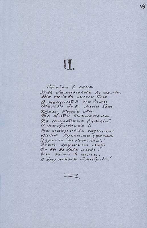 «Більша книжка» Тараса Шевченка. С. 65 – поезія «Ой одна я, одна…» |