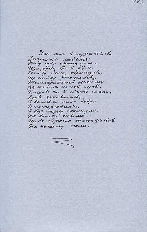 «Більша книжка» Тараса Шевченка. С. 123 – поезія «Як маю я журитися…»