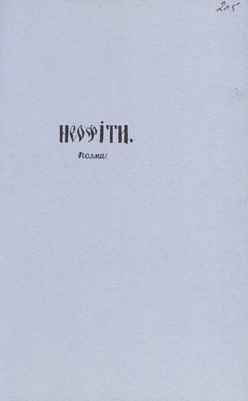 «Більша книжка» Тараса Шевченка. С. 205 – титульний аркуш поеми «Неофіти» |