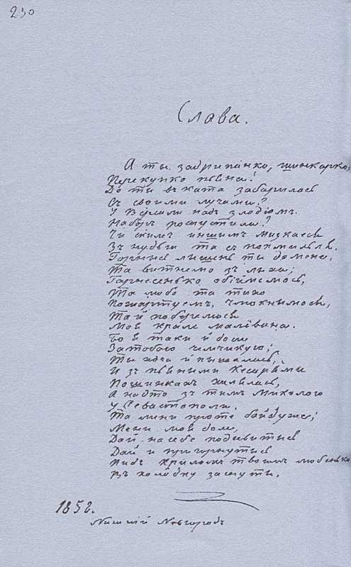 «Більша книжка» Тараса Шевченка. С. 230 – поезія «Слава»