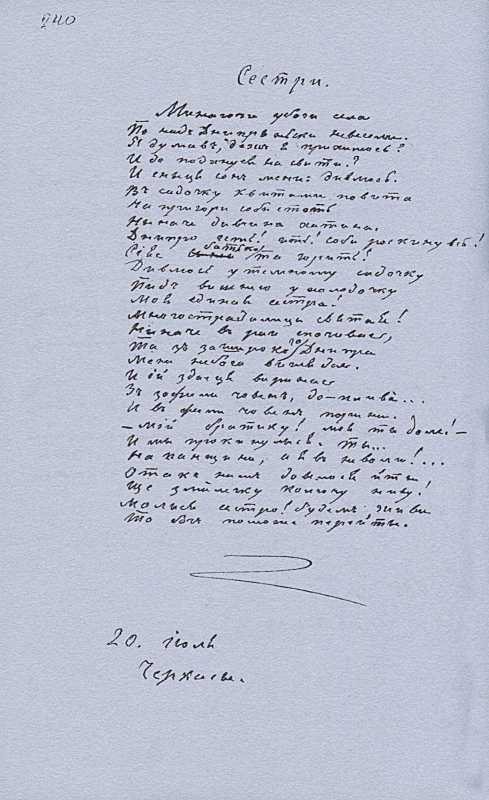 «Більша книжка» Тараса Шевченка. С. 240 – поезія «Сестрі»