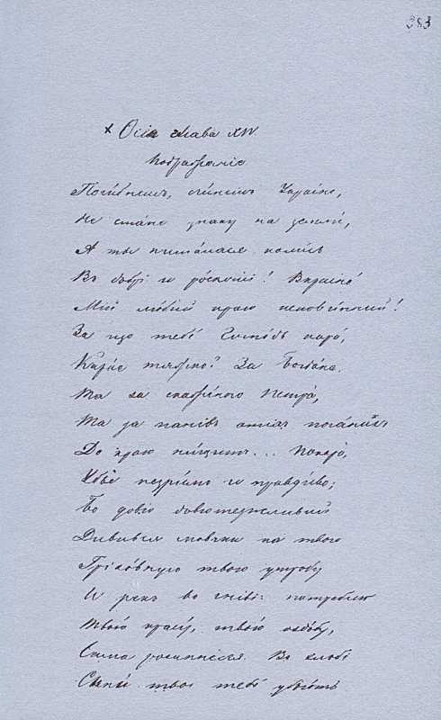 «Більша книжка» Тараса Шевченка. С. 283 – початок поезії Текст переписано рукою Івана Матвійовича Лазаревського, виправлення зроблені Шевченком. |