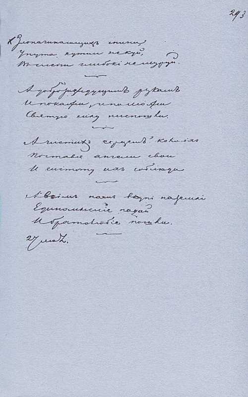 «Більша книжка» Тараса Шевченка. С. 293 – поезія Текст переписано рукою Олександра Матвійовича Лазаревського. |