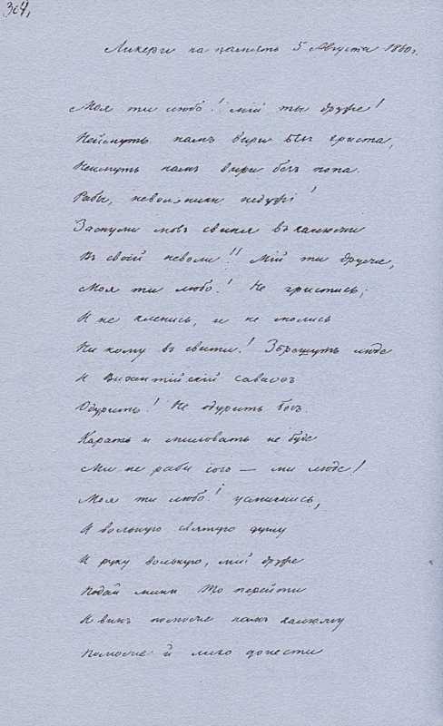«Більша книжка» Тараса Шевченка. С. 304 – початок поезії «Ликері» Текст переписано рукою Івана Матвійовича Лазаревського, з поправками Шевченка. |