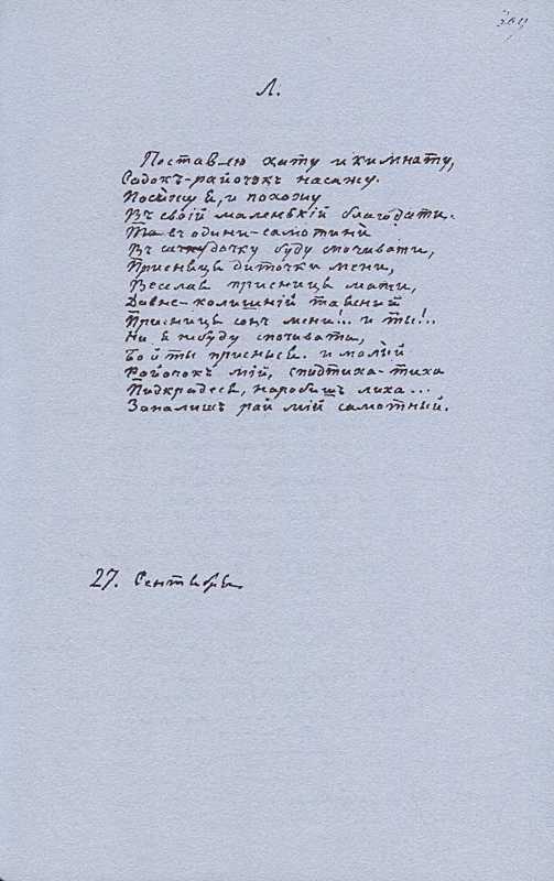 «Більша книжка» Тараса Шевченка. С. 309 – поезія «Л.»