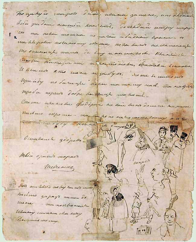 Т.Г.Шевченко. Начерки на зворотньому боці листа до брата Микити Шевченка. 1840, 2 березня. С.-Петербург.