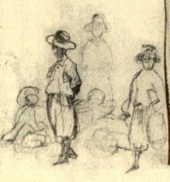 Т.Г.Шевченко. Група селян. Фрагмент аркуша ескізів 1841..1842 рр. |