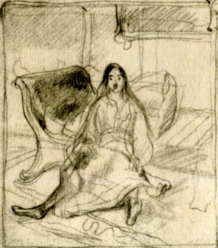 Т.Г.Шевченко. Оксана (1). Начерк.Фрагмент аркуша начерків 1841..1842 рр.