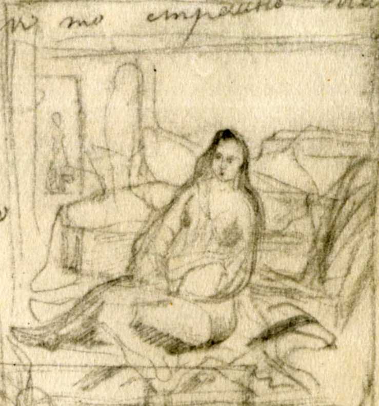 Т.Г.Шевченко. Оксана (2). Начерк.Фрагмент аркуша начерків 1841..1842 рр.