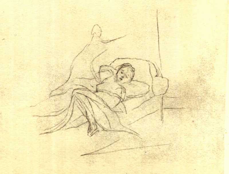 Т.Г.Шевченко. Жанрова сцена. Ескіз. [1843, не пізніше травня. С.-Петербург]. Папір, олівець. 11,1 × 14 см. Національний музей Тараса Шевченка, № г-647.