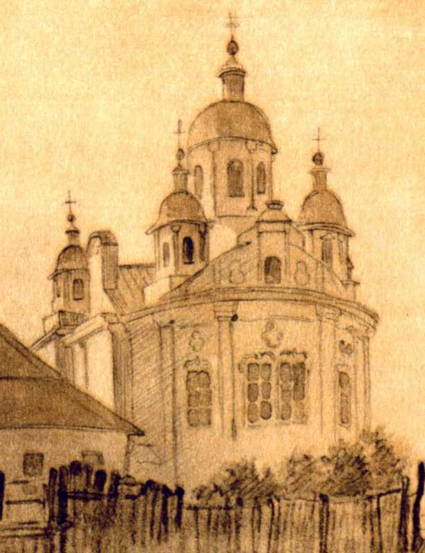 Т.Г.Шевченко. Успенський собор. Фрагмент рисунка «Будинок І. П. Котляревського в Полтаві».