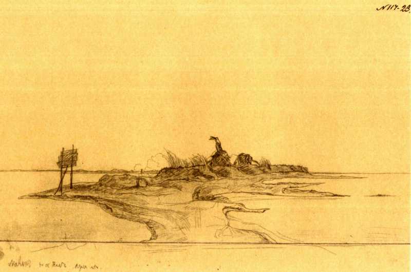 Т.Г.Шевченко. Маяк на Кос-Аралі. Тонований папір, олівець (15,8 × 23,3 см). [Кос-Арал]. [6.Х 1848 – 6.V 1849]. Державний музей Т. Г. Шевченка АН УРСР, Київ, інв. № г – 469.