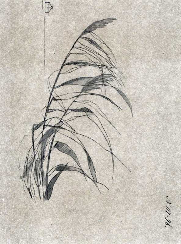 Т.Г.Шевченко. Очерет. Етюд. Тонований папір, олівець (17,2 × 13,1 см). [Новопетровське укріплення]. [1856]. Державний музей Т. Г. Шевченка АН УРСР, Київ, інв. № г – 588.