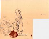 Т.Г.Шевченко. Байгуші під вікном («Державний кулак»). Папір, сепія. [Новопетровське укріплення]. [10.VI 1855 – 21.IV 1856].