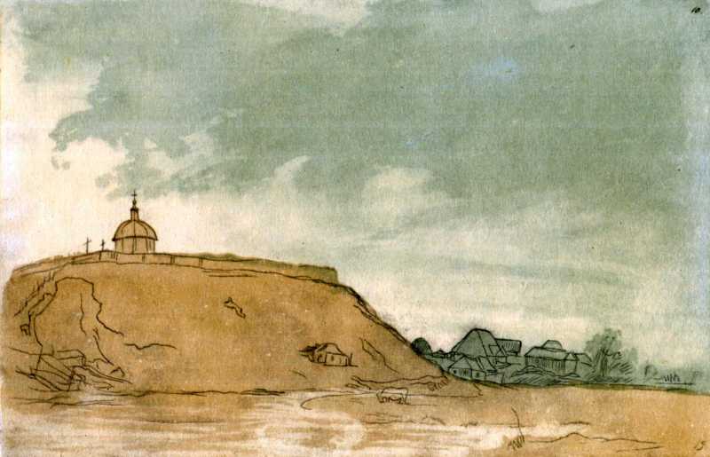 Т.Г.Шевченко. Сільське кладовище. Акварель.