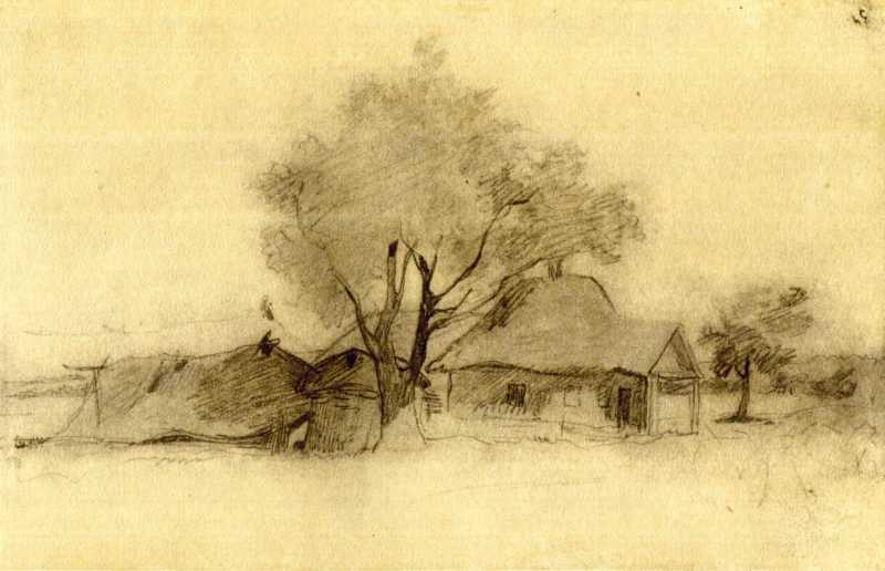 Т.Г.Шевченко. Селянське подвір’я. Начерк. Олівець.