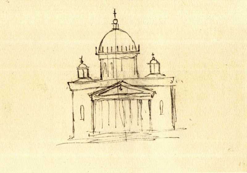 Т.Г.Шевченко. Фасад церкви. Начерк. Олівець. [1846 – 1847]. Зворот арк. 34 альбому 1846 – 1850 рр. № 108