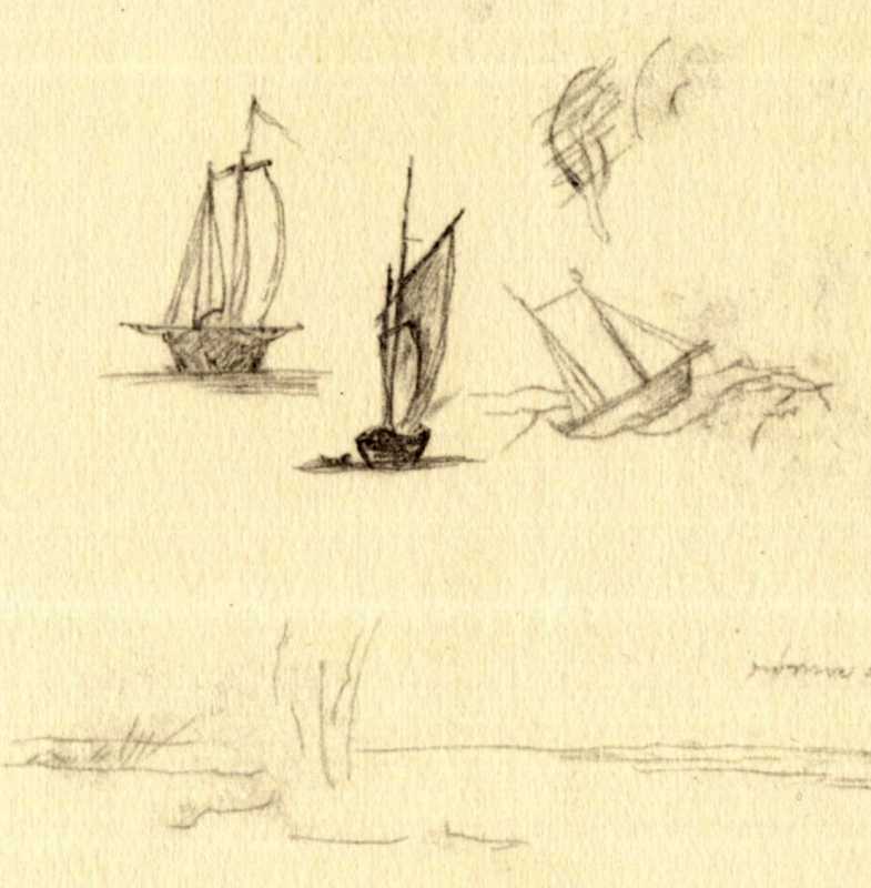 Т.Г.Шевченко. Човни з вітрилами. Фрагмент арк. 1 альбому 1846 – 1850 рр. № 109