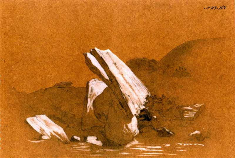 Т.Г.Шевченко. Скелі. Кольоровий папір, олівець, білило (15,4 × 22,4 см). [21.V – Не пізніше 6.IX 1851]. Державний музей Т. Г. Шевченка АН УРСР, Київ, інв. № г – 736.