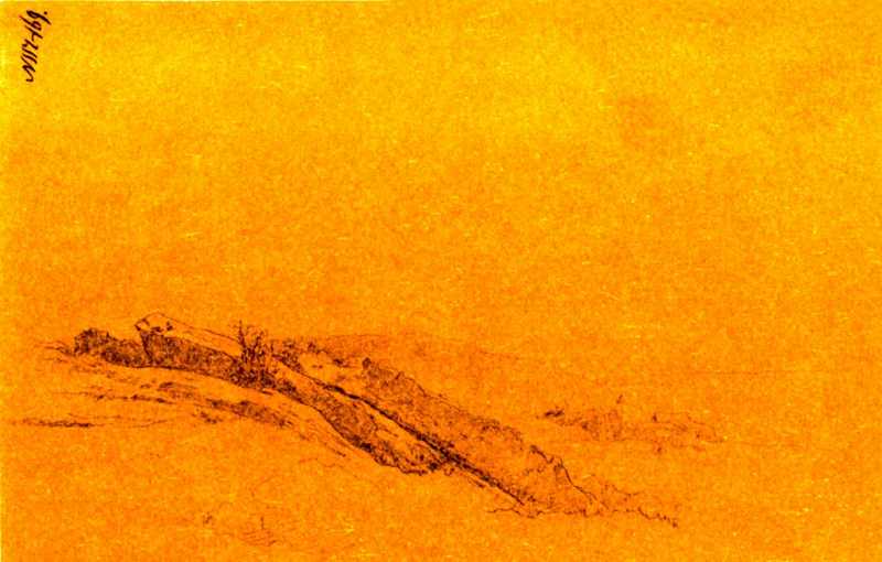 Т.Г.Шевченко. Скелі. Кольоровий папір, олівець (11,2 × 17,1 см). [21.V – Не пізніше 6.IX 1851]. Державний музей Т. Г. Шевченка АН УРСР, Київ, інв. № г – 568.