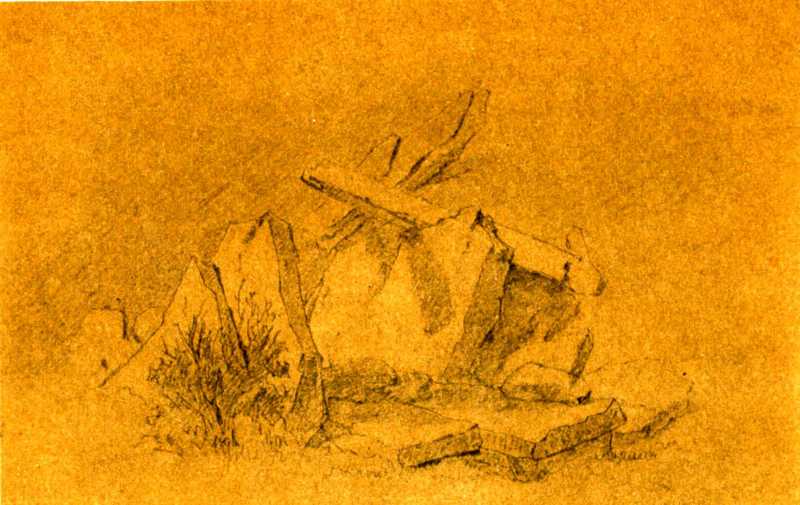 Т.Г.Шевченко. Скелі. Кольоровий папір, олівець(11,1 × 17,1 см). [21.V – Не пізніше 6.IX 1851]. Державний музей Т. Г. Шевченка АН УРСР, Київ, інв. № г – 570.