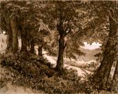 Т.Г.Шевченко. Вечір в Альбано поблизу Рима (Ліс). Папір, офорт, акватинта 22,5 × 28,2 см; 27,3 × 30,7 см; (29,3 × 37,2 см). [Санктпетербург]. [Не пізніше 25.V] 1859. Національний музей Тараса Шевченка, інв. № г – 888.