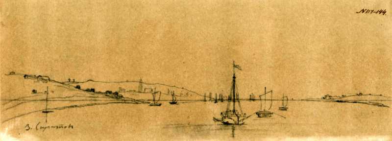 Т.Г.Шевченко. Саратов. Тонований папір, олівець (10,7 × 28,6 см). [31.VIII – 1.IX 1857]. Національний музей Тараса Шевченка, інв. № г – 593.