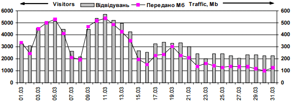 Statistical data in the report presented on the basis of web server and CMS Smereka statistics. Usage of Google analytics data noted separately.