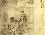 Taras Shevchenko. "Blind" ("Captives"). Paper, Sepia (14 × 11,1 cm). [Not before May] 1843. Drawing on the clipped sheet.