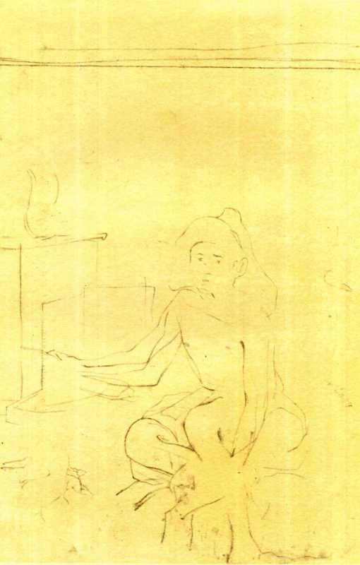 Taras Shevchenko. Kazakh boy kindles stove. Sketch. Pencil on paper (18 × 27,3 cm). [Kos-Aral]. [6.X 1848 – 2.IV 1849].