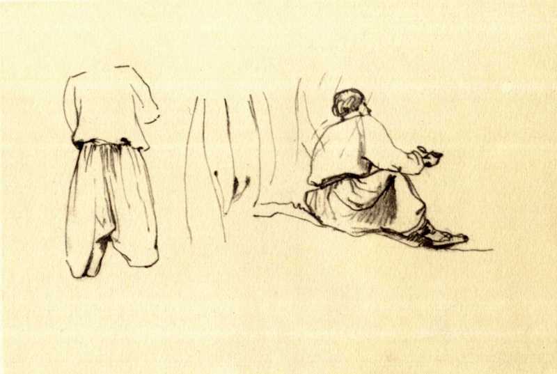 Taras Shevchenko. Peasant with a spoon. The peasant clothes. Outline. Pencil. [1846]. Back of sheet 49 of album 1846 – 1850 № 108