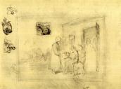 Небольшой эскиз Шевченко с аналогичной композицией содержится на листе с эскизом В.И. Штернберга «Украинский шинок».