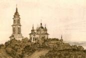 Т.Г.Шевченко. Воздвиженский монастырь в Полтаве. Бумага, сепия, акварель, тушь (19.1 × 27.1 см). Полтава. [Август 1845]. Национальный музей Тараса Шевченко, инв. № г-395.