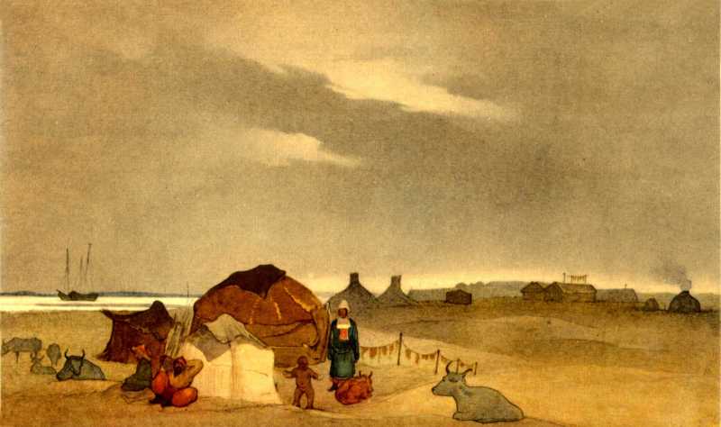 Т.Г.Шевченко. Казахская стоянка на Кос-Арале. Бумага, акварель (13,7 × 22,7 см). [Кос-Арал]. [6.Х 1848 – 6.V 1849]. Государственный музей Т. Г. Шевченко АН УССР, Киев, инв. № г – 446.