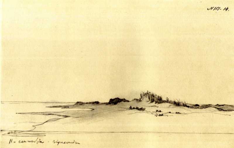 Т.Г.Шевченко. Западный берег полуострова Куланды. Бумага, карандаш (14,8 × 23 см). Куланды. 11.IX 1848. Государственный музей Т. Г. Шевченко АН УССР, Киев, инв. № г – 464.