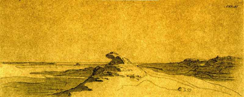 Т.Г.Шевченко. Скала у Новопетровского укрепления. Тонированная бумага, карандаш (13,9 × 34,3 см). [Новопетровское укрепление]. [1851 – VII 1857]. Государственный музей Т. Г. Шевченко АН УССР, Киев, инв. № г – 563.