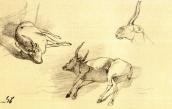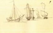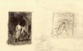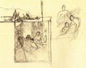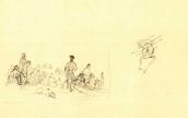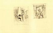 Рисунок на обороте л. 7 (шаржированный автопортрет во весь рост) и наброски на обеих внутренних страницах обложки (штоф, здание и бутылка) не репродуцируются.