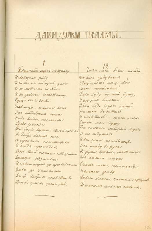 Альбом Тараса Шевченка «Три літа». С. 194 – початок циклу «Давидові псалми» з псалмами 1 та 12 |