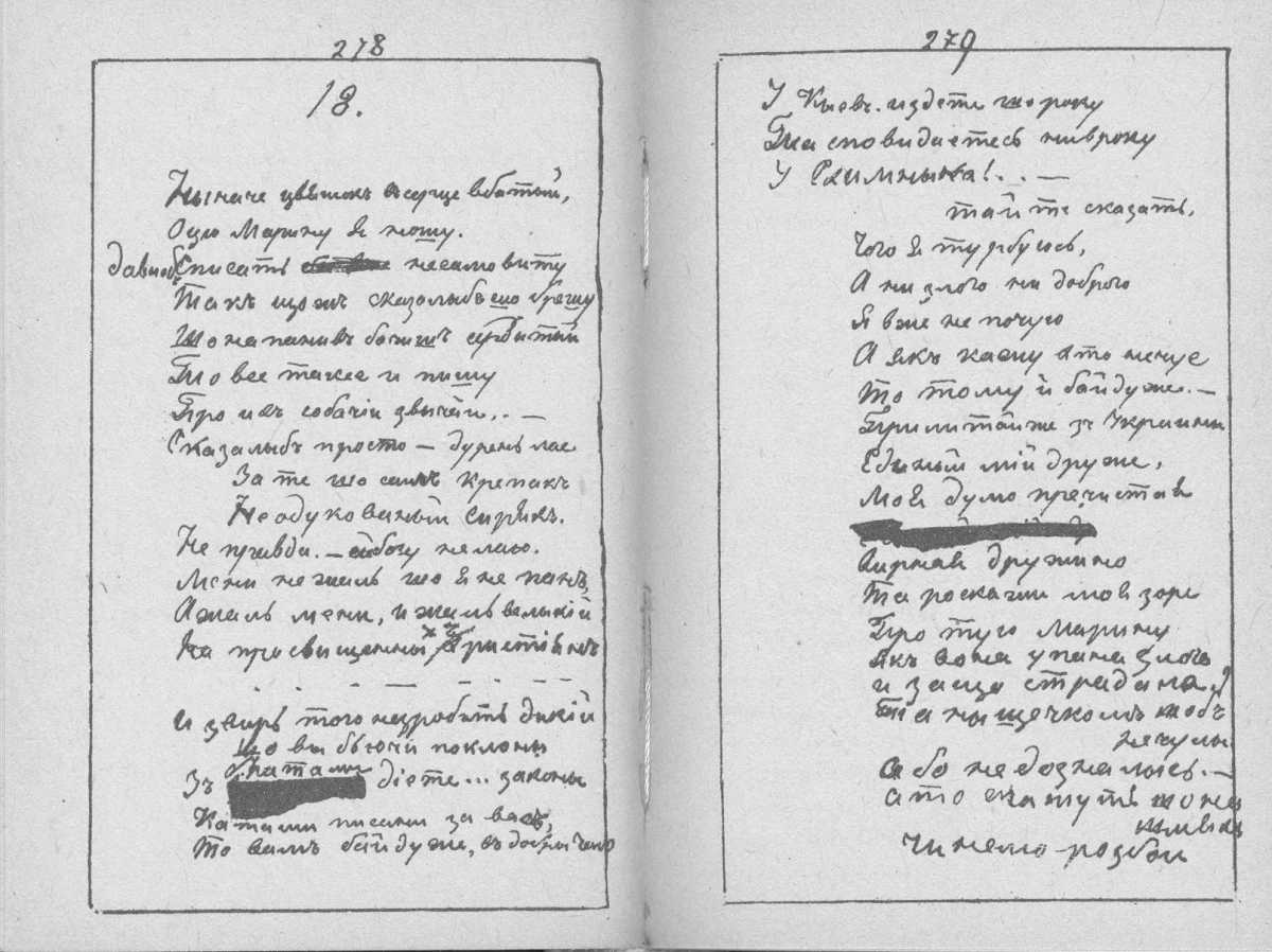 «Мала книжка» Тараса Шевченка. С. 278 – 279 – початок поеми «Марина»