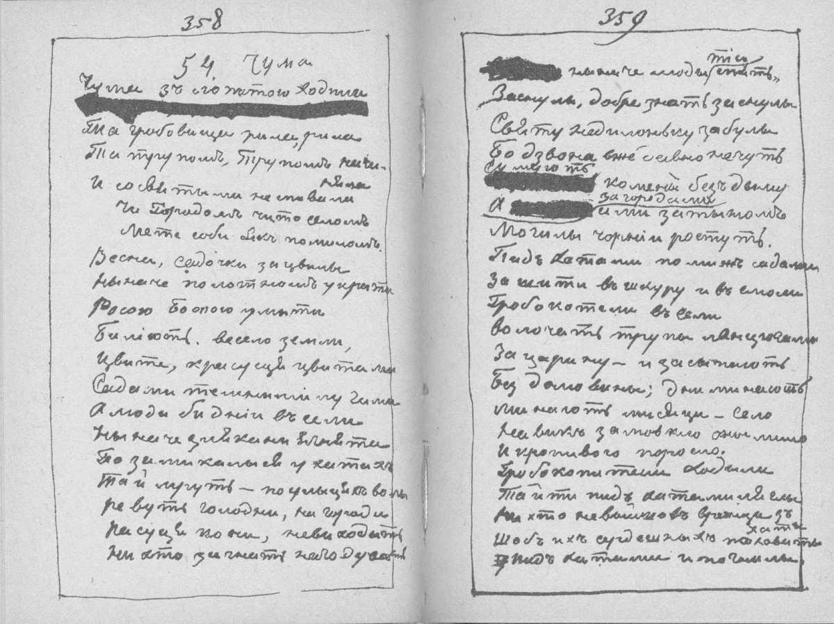«Мала книжка» Тараса Шевченка. С. 358 – 359 – початок поезії «Чума»