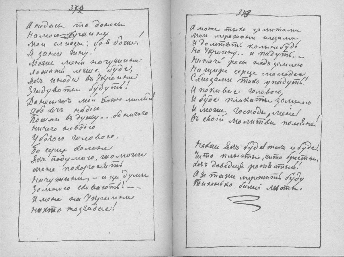 «Мала книжка» Тараса Шевченка. С. 372 – 373 – закінчення поезії «Лічу в неволі дні і ночі…» з рядка « А не даси, то донеси…»