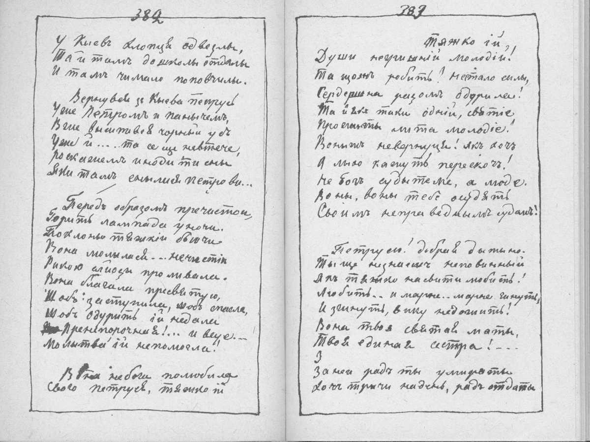 «Мала книжка» Тараса Шевченка. С. 382 – 383 – продовження поеми «Петрусь» з рядка «У Київ хлопця одвезли…»