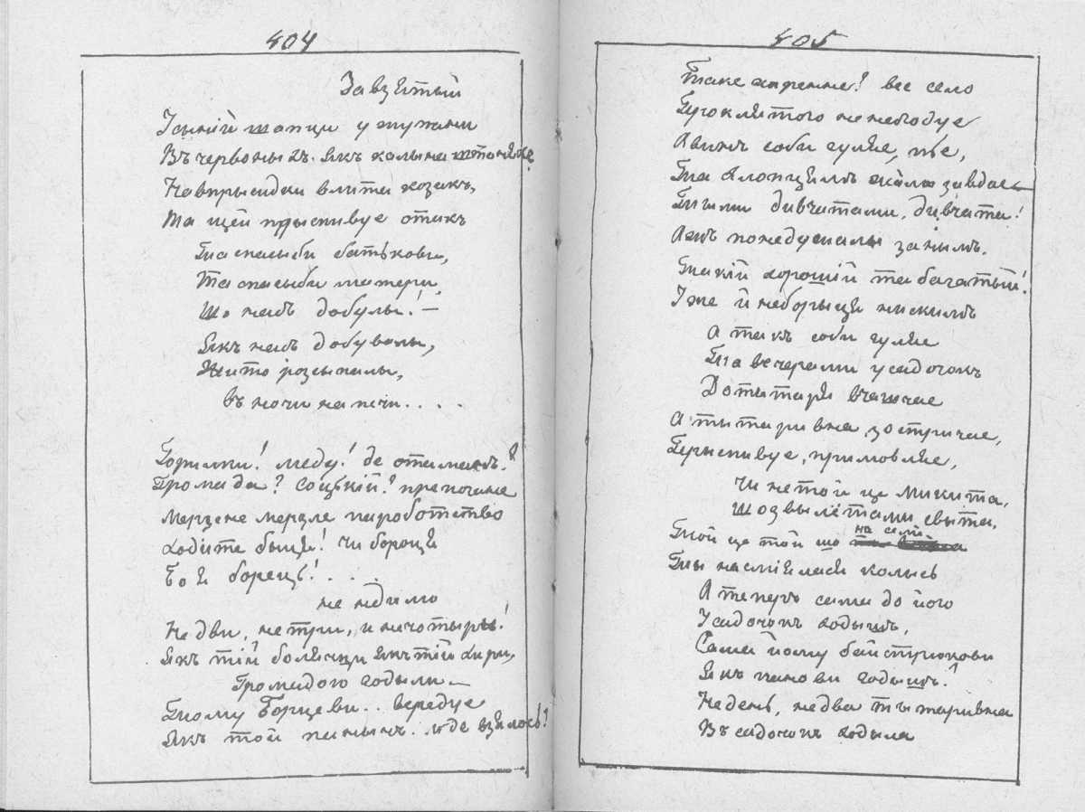 С. 404 – 405 Завзятий…«Мала книжка» Тараса Шевченка. С. 404 – 405 – продовження поеми «Титарівна» з рядка «Завзятий…» |