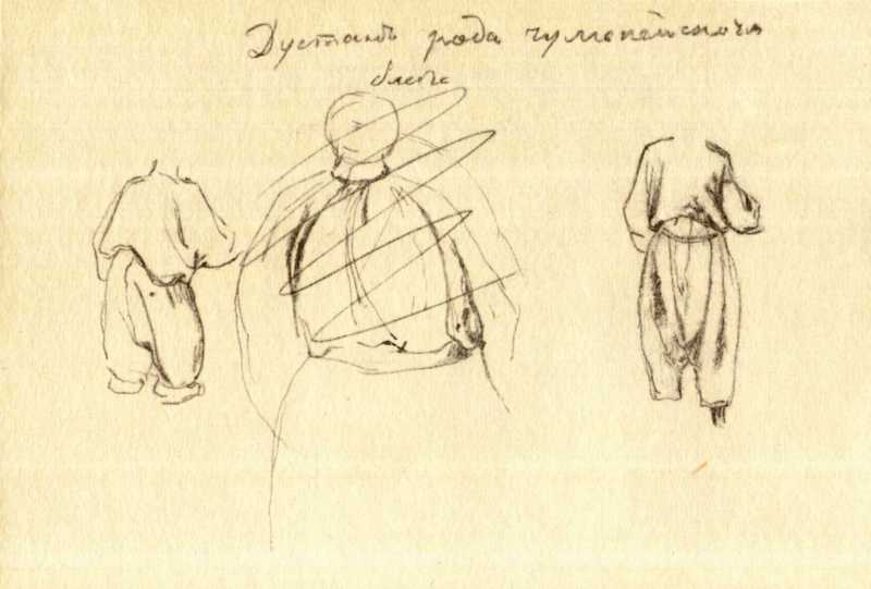 Т.Г.Шевченко. Селянський одяг. Начерки. Олівець. [1846]. Зворот арк. 45 альбому 1846 – 1850 рр. № 108