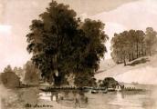 Вперше про альбом та його власника В. М. Лазаревського згадується в журн. «Киевская старина» [1888, кн. VI, стор. 83], де сказано, що це «Альбом рисунков пером, сепией и карандашом: виды в Мошнах, Черкасах, Межиричьи, Корсуни (хата, бережок, деревья), около Канева (низкий берег Днепра), этюды деревьев, два вида с подписью «в Лыхвыни» (Тульск. губ.). Рисунки пером: малороссиянки, идущие с водой от криницы, мулла перед раскрытой книгой». Згаданий тут пейзаж с. Мошни не знайдений (див. № 162).